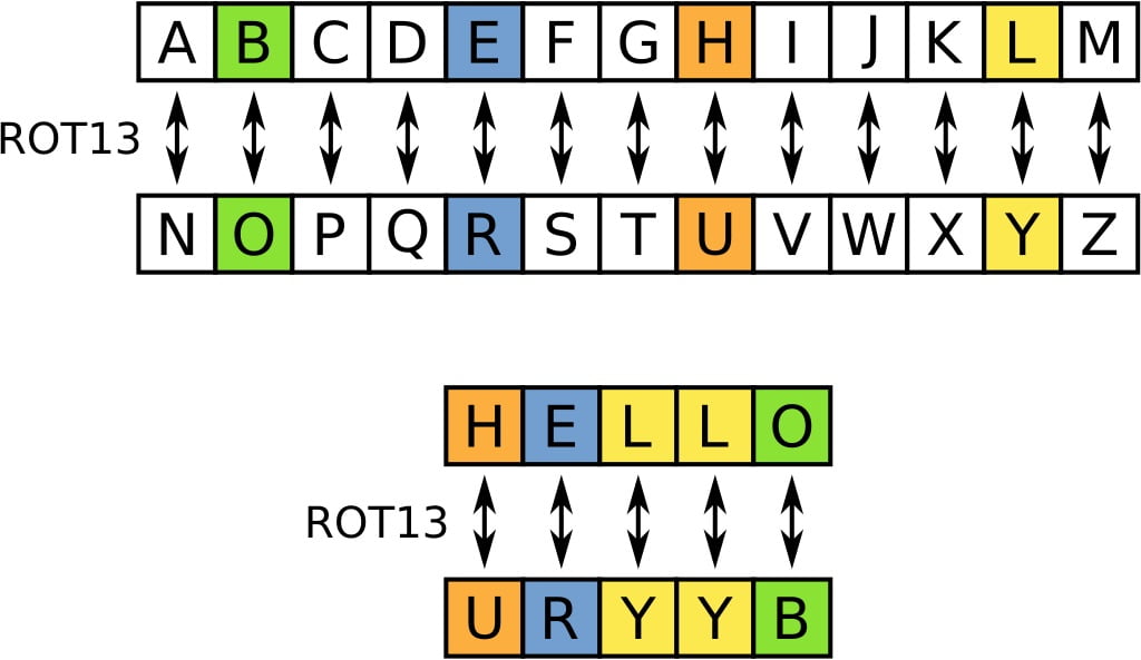 ROT13 table with example